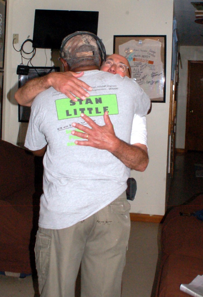 Time to get started. Everybody was up and moving early this morning. Breakfast was great. There is a certain comfort in waking up and and finding a familiar breakfast – Dino’s sausage and peppers, (Actually, I think Kristin made them, but they were Dino’s idea) Kristin making scrambled eggs to order, (I would add a picture of Kristin, but she would get mad at me,) Dino’s coffee cake, (Really his this time) and most importantly, the appearance of a couple longtime friends.