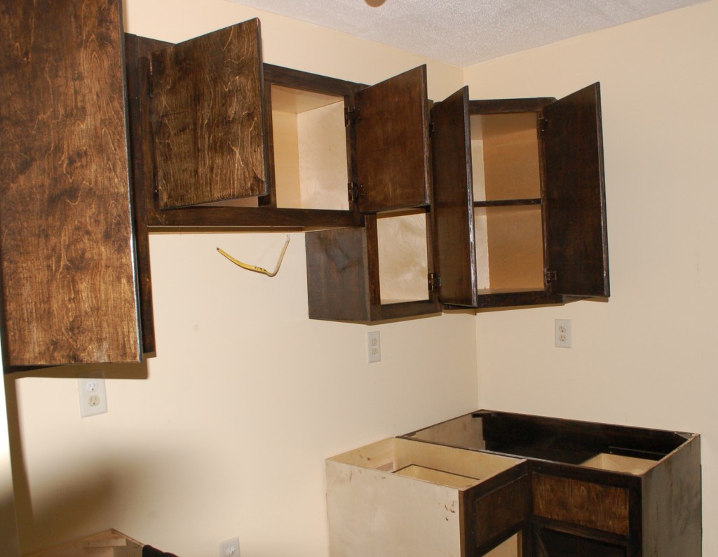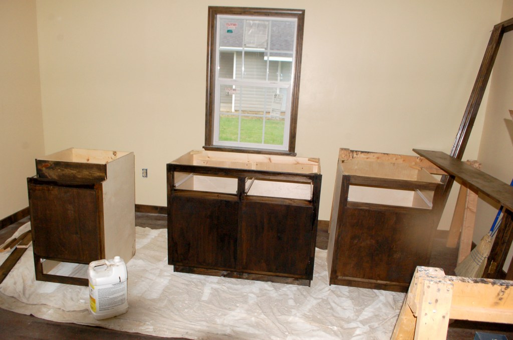 We got just about all the cabinets stained today. Tomorrow we start working on the trim and the like.