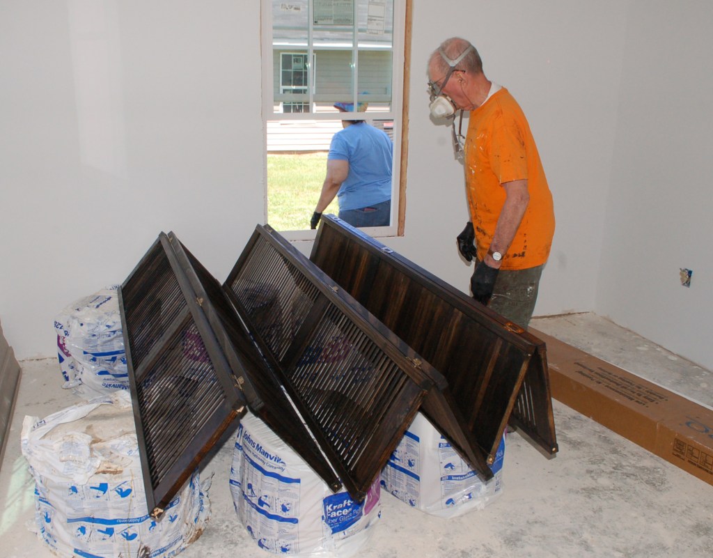 The staining crew has been busy. Jim and Charlotte have been working on closet doors.