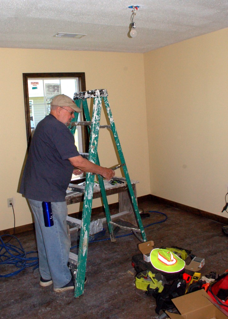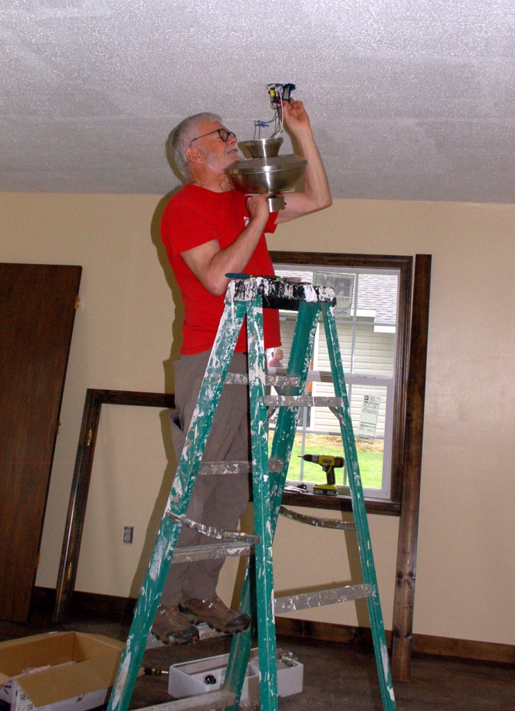 and we have gotten most of the cabinets finishedEd is getting the bathroom vanity togetherThis is Jon, informally known as “Jon without an H” adding ceiling fixtures