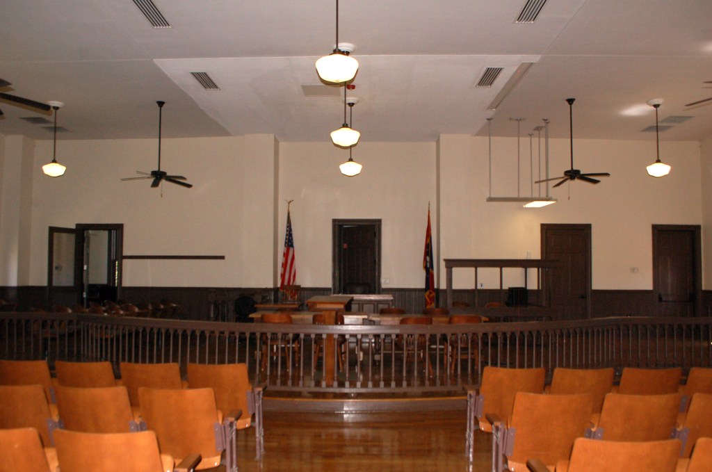 The courtroom has a few pieces of modern furniture and the recently adopted Mississippi State Flag. Otherwise it is largely unchanged from 1955. The area before the bar where attorneys sit and conduct business is very small, but it otherwise does not look substantially different than many courtrooms in which I have appeared.