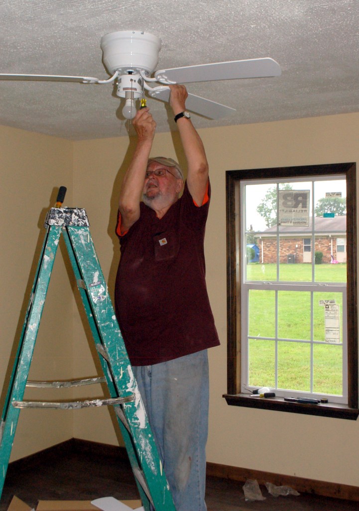 Here is a ceiling fan installed by Jon without an H. I understand that it wil play an important part in the sign we post at the end of the week.
