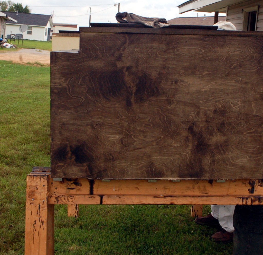 I do recall that she came up with the idea for the plaque that year. We spent at least some time together that year, as there is a picture in the blog of my wood-stained hand.