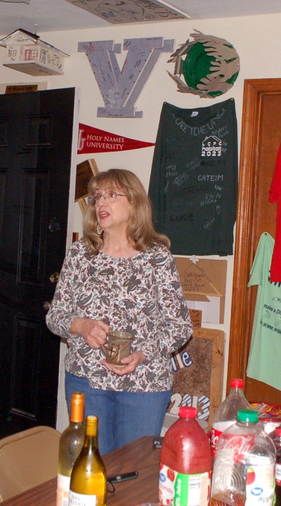 This event has evolved over the years. It used to be held at the community center with any homeowners invited to attend. It often drew a fairly big crowd. In more recent years, it has been a simpler affair. This year it took place at the dorm with most of the food provided by Sheri. The new homeowner and a few family members and supporters attended.