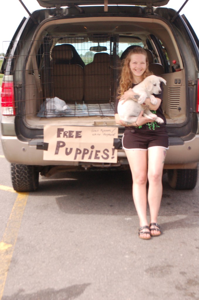 Outside the store, a young couple were giving away puppies. They are cute! Of course they are. They are puppies. But at the age of eleven weeks, these offspring of a Grand Pyrenees and White German Shepard are already as big or bigger than most dog you might find strolling the streets of Chicago. When someone asked who big they would grow, I said, “Think ponies.” The lady giving them away replied, “That’s about right. About up to my hip.” Like the people giving them away, the puppies appear calm and gentle, but I would not want to be an intruder in whatever home they wind up in. The couple managed to find four of the six they brought there is a little over an hour. They are keeping two others. Kindhearted souls, no doubt, but no surprise that at Boomland, even the things you can get for free are big!