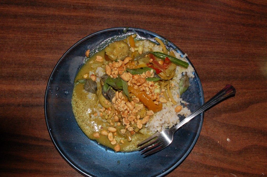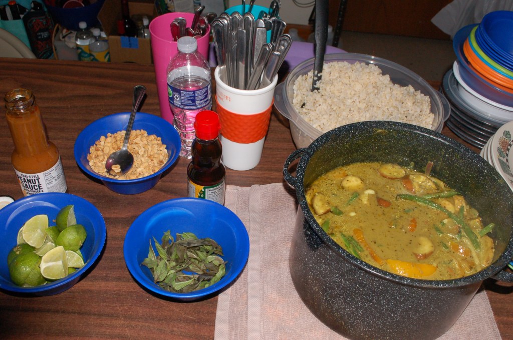 Like I said, we eat really well down here. Andy Thomas is an accomplished chef and relishes the opportunity to demonstrate his culinary skills. So last night it was barbecued ribs and chicken, cowboy beans, greens appropriate for the locale, and a few things I do not remember. Tonight it is Thai curry with peanuts, Thai basil, sesame oil, and limes served over fluffy rice.