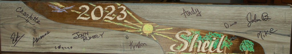 It always gives me a feeling of satisfaction to sign my name. This year several of us spent time looking over the ones from years past and recalling the people who came along, some of whom have either moved or passed away. Andy designed one for 2020 when Covid shut things down for the year, and by the time we made it down here for 2021, four of our regulars had passed away. Andy added their names to the sign, which is appropriate since they left a legacy in some of the houses that stand here and the people who live in them.