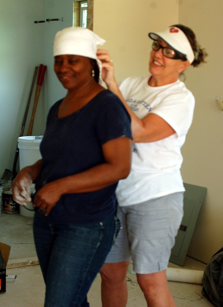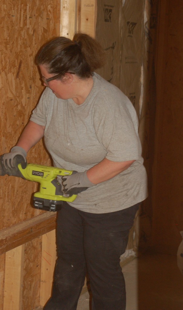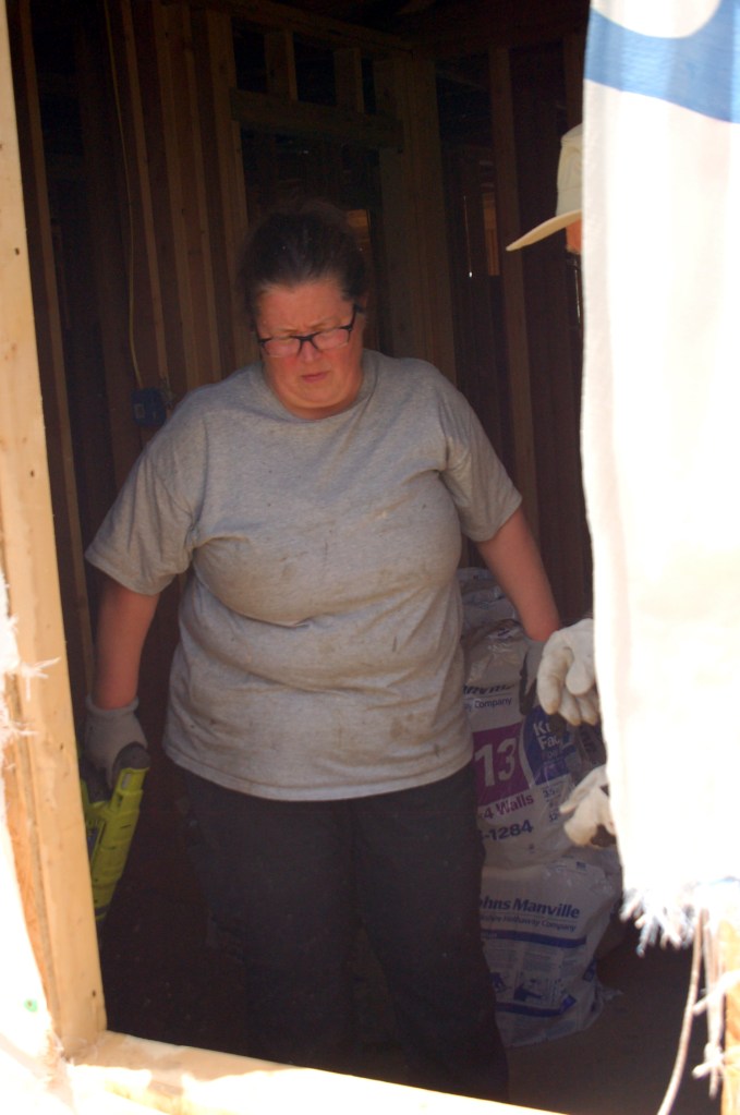We worked on Sarah’s house a few years back. As a matter of fact, we worked on it two years in a row. The first year, things were pretty bare. Homeowners have to put in a certain number of hours on either their house or someone else’s, so Sarah dropped by to work on her house. We were putting up drywall, so she could not afford to get plaster in her hair before going to work.