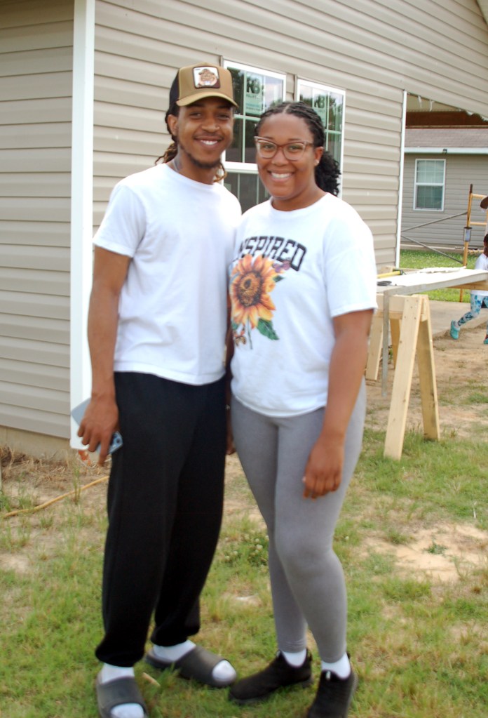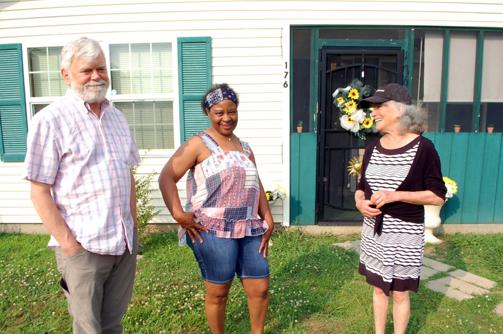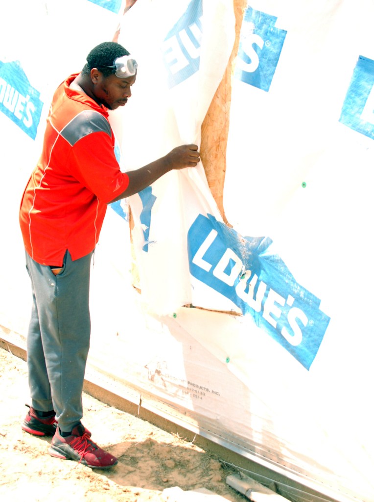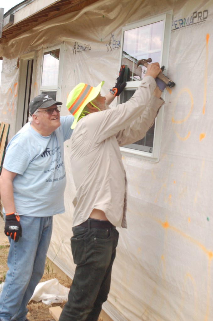 Emma came out to watch us work and make sure we are doing a good job on what will soon be her granddaughter’s house. Another daughter lives across the street and another around the corner. Lots of family connections in this neighborhood. Habitat homeowners have to put in a certain amount of work on their houses or another, so Pierre and Ariel came down to help. It is always good to meet the people who are going to move in.