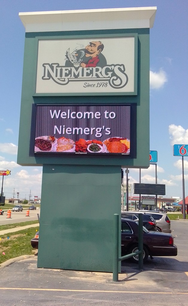 We always meet at Niemerg’s restaurant in Effingham, IL (named after the British nobleman who refused to take up arms against American revolutionariers.) Niemerg’s has pretty good food and a great salad bar. And it is about halfway down.