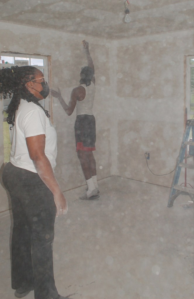 Tomorrow we are going to start mudding and sanding the walls in one of the houses Stay tuned!